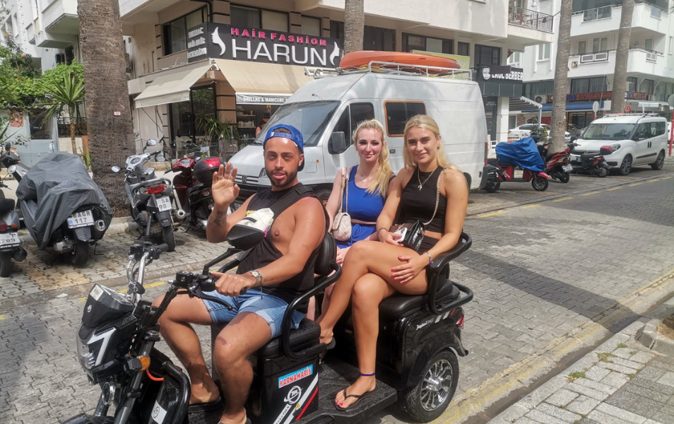 The three-wheeled electric vehicles are designed to combine stability, efficiency, and ease of use. They are perfect for navigating Marmaris’s narrow alleys and busy markets, offering a smooth ride without the noise and pollution of traditional gas-powered vehicles. Visitors can enjoy the freedom of exploring hidden gems at their own pace, with no parking worries and no fuel costs.